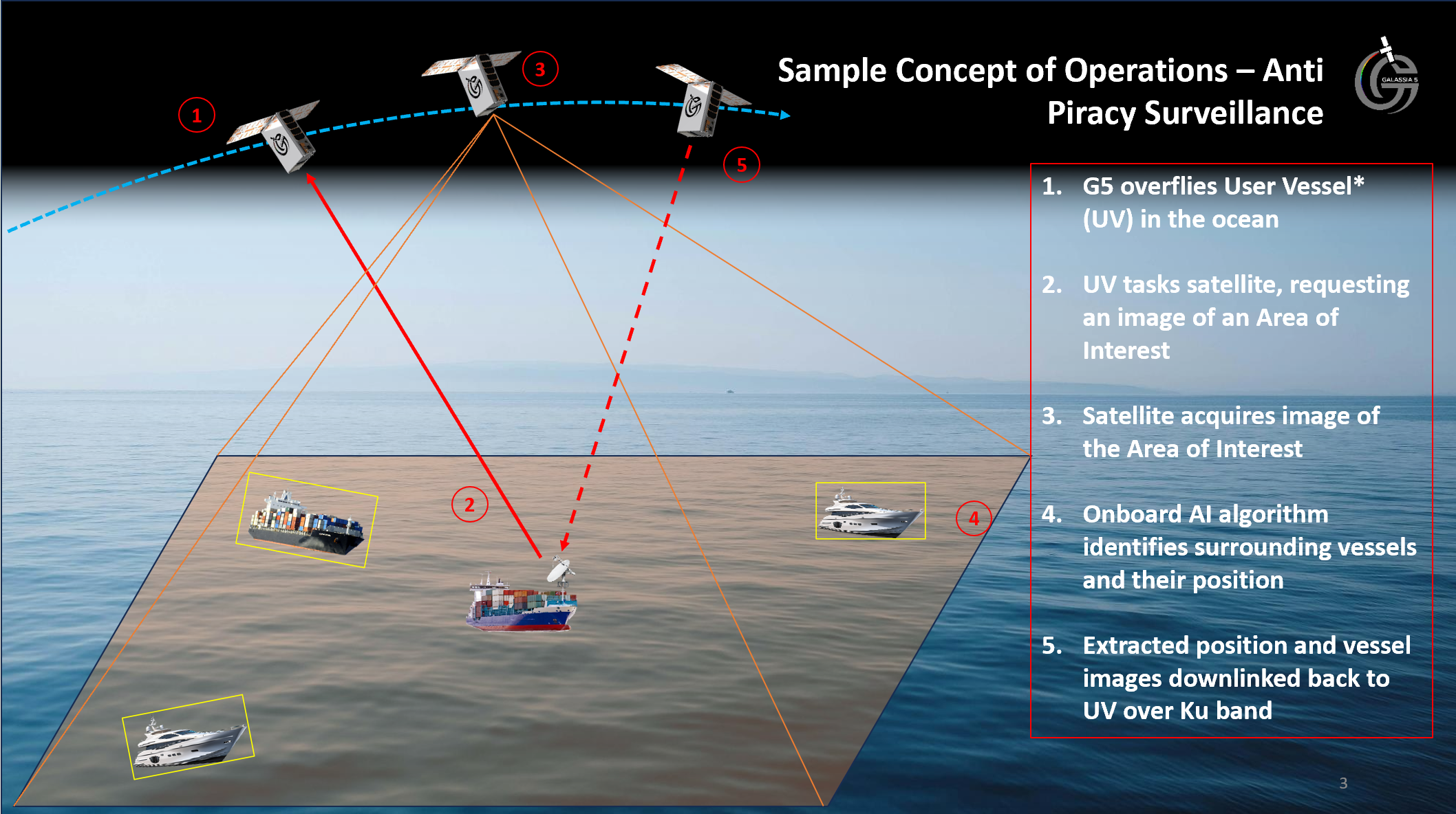 To address these challenges, Galassia 5 is designed to demonstrate a new generation of AI-enabled, real-time Earth-observation capabilities supported by a Ku-band downlink system.