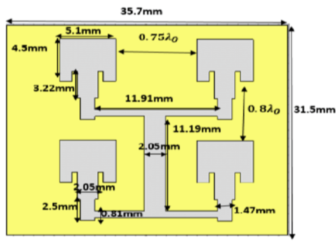 | Dual-Feed Rectangular Patch + Wilkinson Power Divider | 3 | 1 | 3 | 7 |