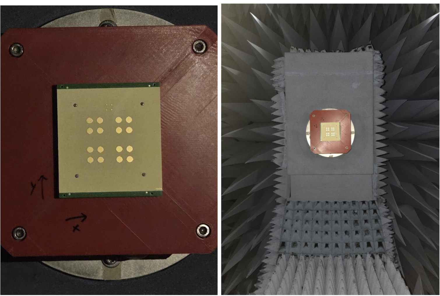 Figure x. Antenna mounting setup in the anechoic test chamber.